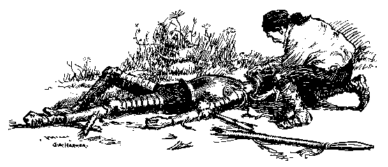 -Ténganse todos, que vengo malferido por la culpa de mi caballo. Llévenme a mi lecho y llámese, si fuere posible, a la sabia Urganda, que cure y cate de mis feridas.