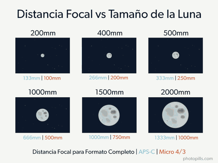 - Super teleobjetivo: Focales de 160 a 600 mm, ángulos de 10º a 2º.