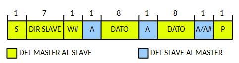 • La segunda S es una condición de Inicio repetida. Si un Master-receptor envía una condición repetida de Start, previamente ha enviado un no reconocimiento.