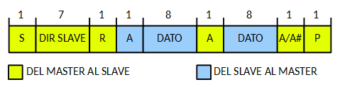 • Después de la condición Start si la dirección del esclavo es repetida los datos pueden ser transferidos.