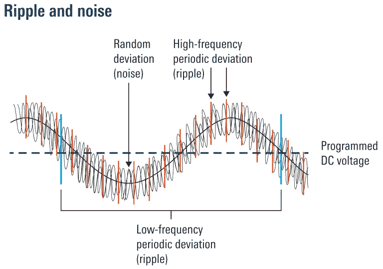 Los circuitos electrónicos avanzados y complejos son muy sensibles a las variaciones de tensión en las líneas de alimentación. Para reducir al mínimo las interferencias cuando se suministra potencia a los dispositivos examinados, las fuentes de alimentación deben proporcionar tensiones y corrientes de salida sumamente estables. En el caso ideal, una salida no presenta ninguna variación de tensión. En la práctica, dos tipos de variación pueden afectar al circuito o el dispositivo: variaciones periódicas (rizado) y variaciones aleatorias (ruido), que se denominan también desviaciones periódicas y erráticas (PaRD). Las fuentes de alimentación lineales presentan un rizado de alta frecuencia considerablemente inferior en comparación con las fuentes conmutadas.