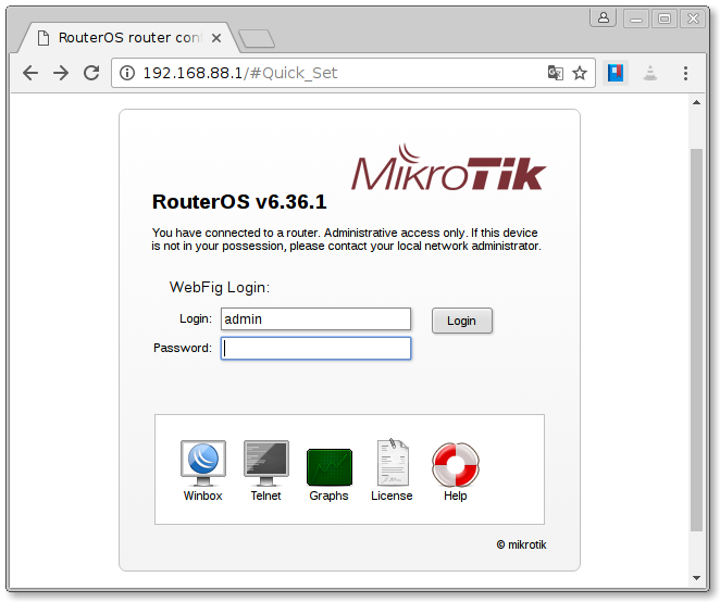 • En una pestaña del navegador de internet introducimos la dirección 192.168.88.1, que es la que trae por defecto.