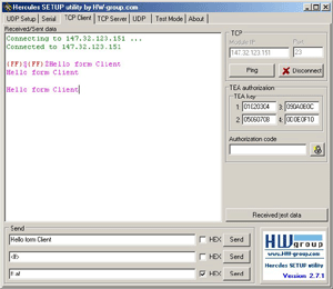 La pestaña Cliente TCP de la utilidad Hercules se puede utilizar como un terminal de cliente TCP/IP simple similar a Telnet.
