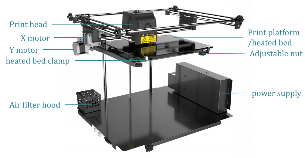 - Adjustable nut: Tornillos de ajuste para nivelación de la cama caliente.
